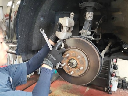 お客様から「ブレーキ周辺からキーキー音がするので見てほしい」とご要望をいただきました。